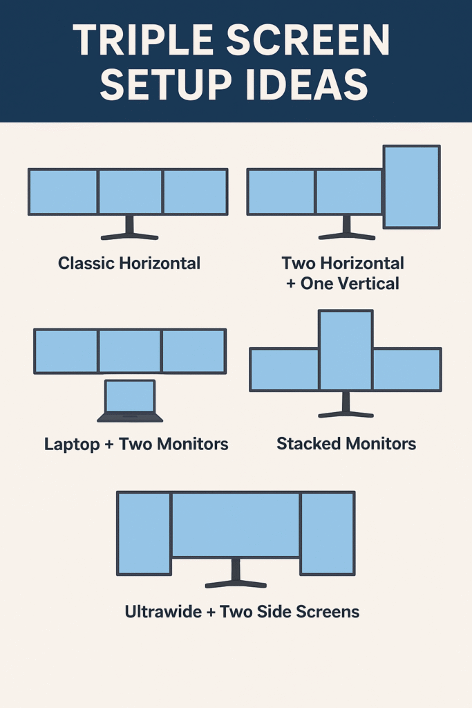If you spend long hours working remotely, a triple screen setup can dramatically improve productivity. Whether you’re coding, designing, or managing multiple projects, three monitors give you more real estate to organize tasks efficiently. Below are some smart ways to build your own triple-screen workstation.